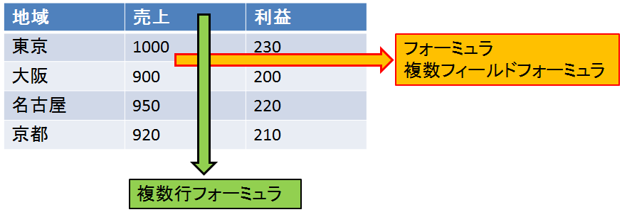 ここが違います「複数行フォーミュラ」ツールと「フォーミュラ/複数フィールドフォーミュラ」ツールの違い