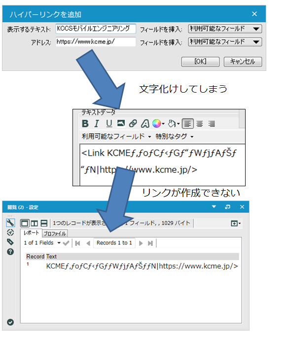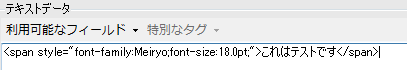 ただし、2バイト文字は日本語が文字化けするため「表示するテキスト」への直接入力では使えません。