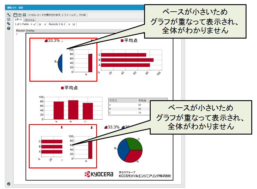 例えばグラフを並べて、右下にロゴを配置する形式のレポートなどが作成できます。