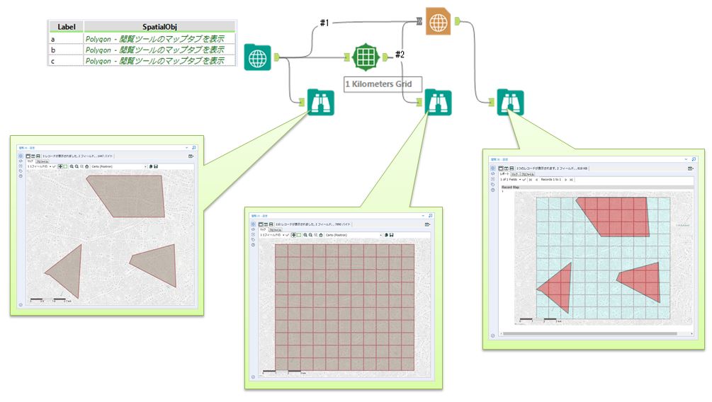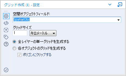 | 空間オブジェクトフィールド | Alteryxデータストリーム内の空間オブジェクトフィールドを選択します。選択されたフィールドに基づきグリッドが作成されます。 |