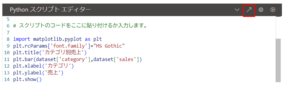 plt.show()スクリプトエディターで入力し、スクリプトエディターの一番右にある「スクリプトの実行」ボタンを押して実行すると、
