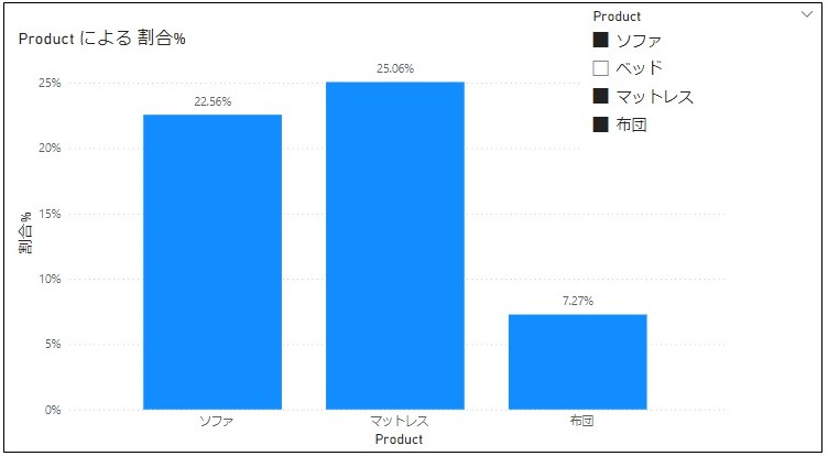 このように、品目にフィルタを適用しても、全体の値に対しての割合を求めることができます。