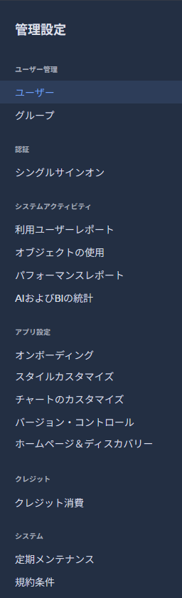 基本的にThoughtSpotは、データを検索する「インサイト」、データのモデリングなどを行う「データワークスペース」、組み込みやAPI用の「開発者」、管理・運用を行う「管理者」の4つの画面で構成されています。新UIでは、左のナビゲーションにて「インサイト」「データワークスペース」「開発者」の3つの画面を切り替える形になりました。