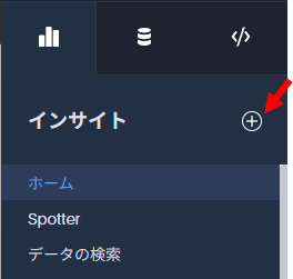 さらに、インサイトとデータワークスペースにはよく使う作成機能をまとめた「+」ボタンが用意されています。