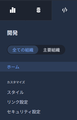 プライマリOrgは配下のOrgすべてに対しての設定ができる画面が追加されます。「全ての組織」を選択すると、全体に関わる設定を行うメニューが出ます。