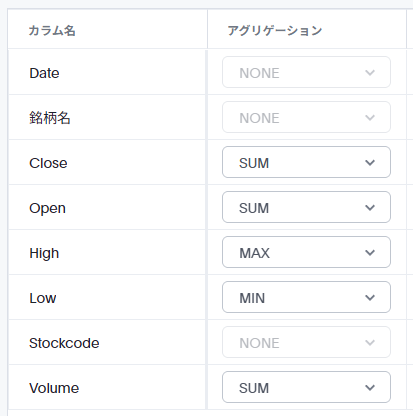 | 安値(Low) | 最小値 |