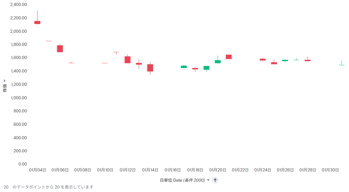 例えば、以下は日単位の株価です(このデータで一番詳細な粒度です)。