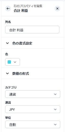 「色付きスライス」は、以下の内容の変更ができるようになっていますが、数値の形式はラベルがつかず、ツールチップにのみに対してだけ有効となります。