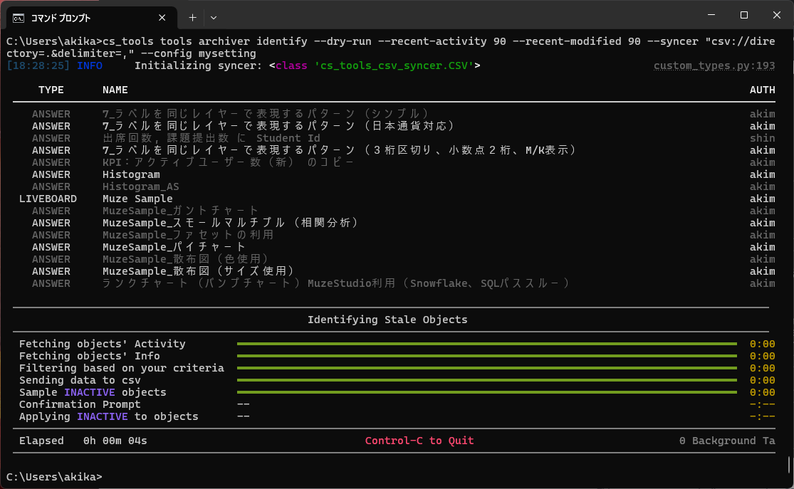cs_tools tools archiver identify --dry-run --recent-activity 90 --recent-modified 90 --syncer "csv://directory=.&delimiter=," --config mysetting