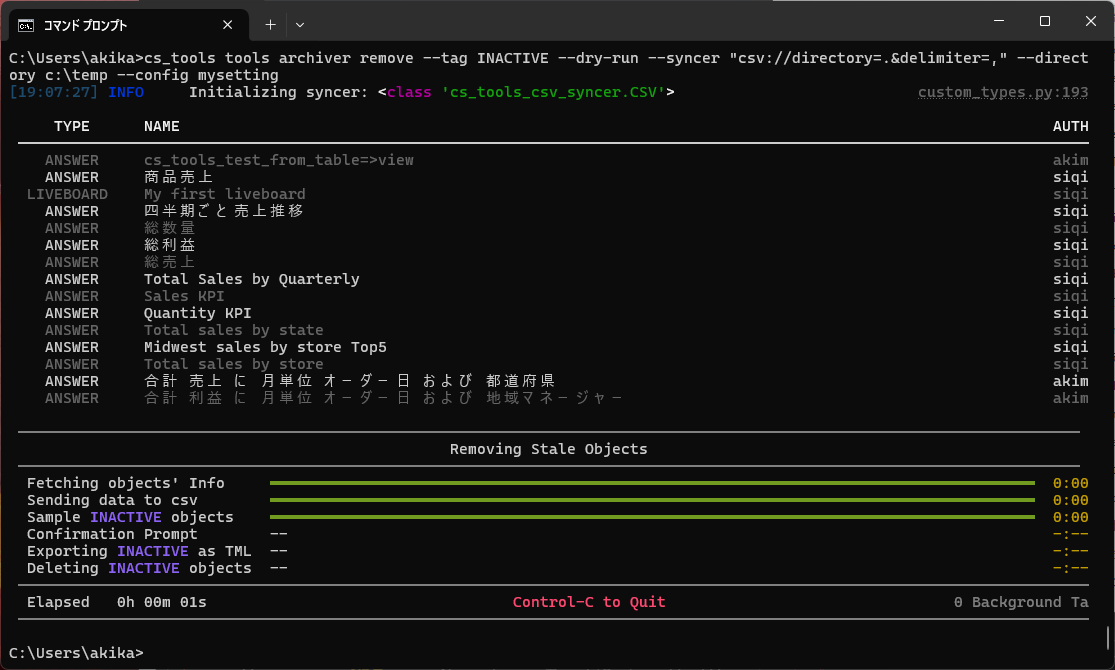 cs_tools tools archiver remove --tag INACTIVE --dry-run --syncer "csv://directory=.&delimiter=," --directory c:\\temp --config mysetting