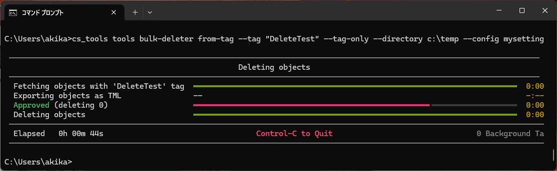 bulkdeleterは、一括で各オブジェクトを削除するツールですが、Dry-Run(実際には実行しない)オプションは持っていません。その代わり実際に実行するかどうかプロンプトが出てくるためある程度の安全性は確保されています。--no-promptオプションを使ってしまうと、自動的に削除が実行されてしまうので気をつけましょう(自動化の際はこのオプションが使えると思います)。