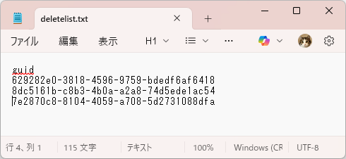 実際に使う場合、以下のような簡単なCSVを準備すればオッケーです。カラム名を「guid」にするところがポイントです。