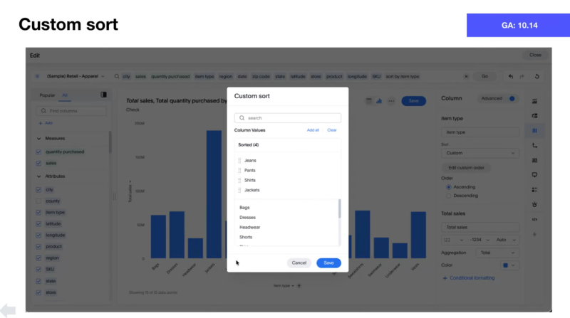 - カスタムソート、高度なチャート設定、よりスマートなチャート推奨などを使用した正確なコントロール。