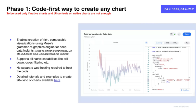 「コードをホストするために別の Web ホスティングは必要ありません。」については、ThoughtSpotが持っているカスタムチャート機能は、別にWebホスティングが必要になります。Muze Studioならそのようなものなしにカスタマイズしたチャートが作成できるのがポイントです。MuzeでできるならMuzeで実現することをおすすめします。