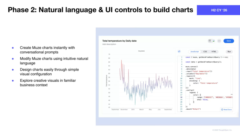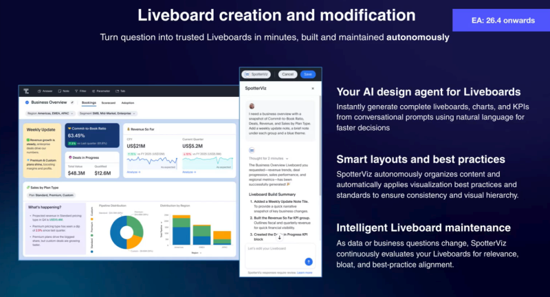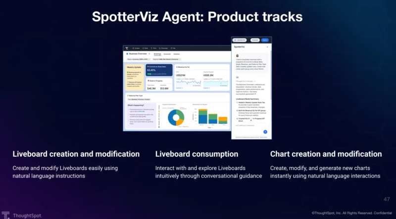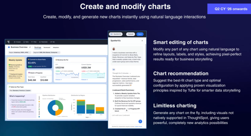 - 自然言語による会話プロンプトから、完全なライブボード、チャート、KPIを瞬時に生成し、迅速な意思決定を実現します。