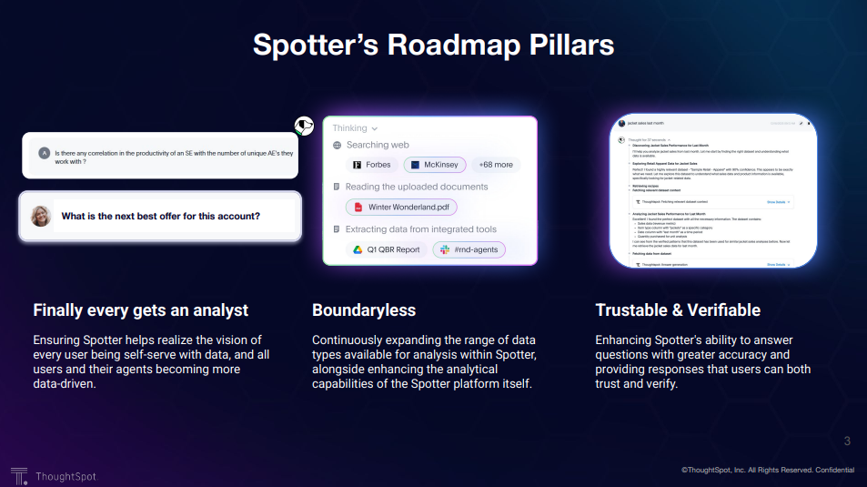 まず、こちらがSpotter3のロードマップの3本の柱とのことです。