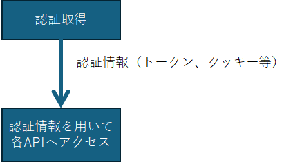 実際にAPIを使う場合、認証を通してから各APIを使う必要があります。つまり、以下のようになります。