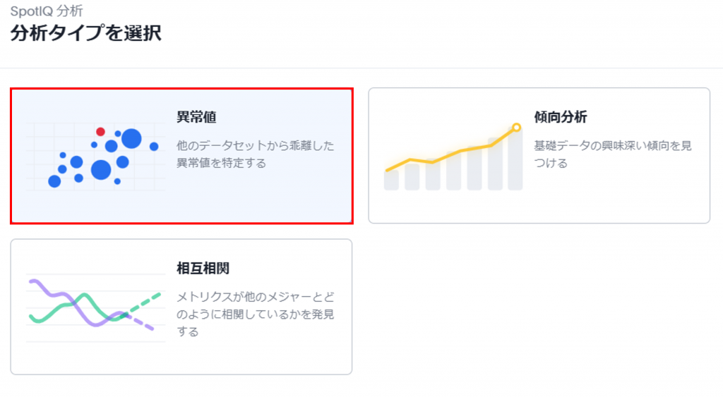 分析タイプで「異常値」を選択します。