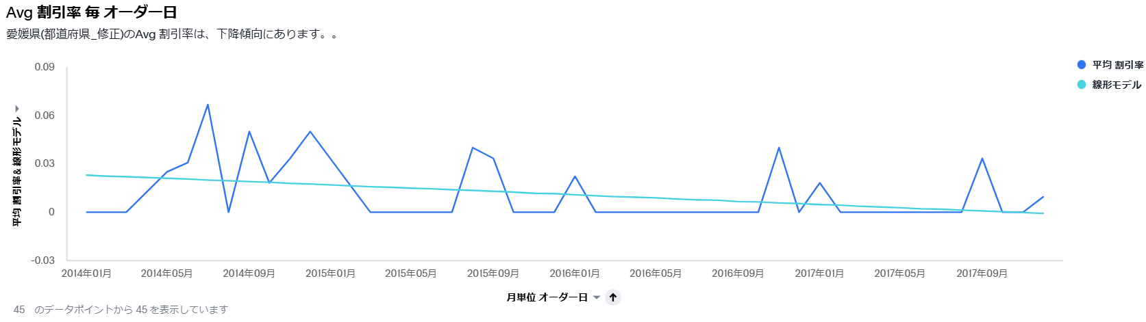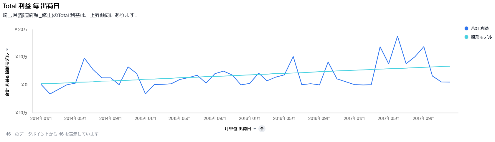 傾向分析では、線形モデルから上昇傾向か下降傾向かを知ることができます。