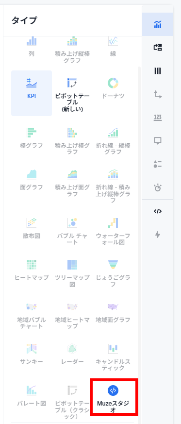 Muze StudioがGAになり、以前はカスタムチャートの1機能として設定を行う必要がありましたが、標準のチャートの一つとして選択できるようになりました。