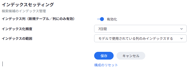 ここで、以前は「すべての列をインデックスする」設定しかありませんでしたが、「モデルで使用されている列のみインデックスする」設定を行うことができるようになりました。