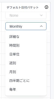 モデルやテーブルにて、デフォルトの日付バケット(日付間隔)を指定できるようになりました。