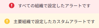なお、すべての組織と個別のOrg、それぞれでアラートを設定可能ですが、両方設定すると、両方表示されます。