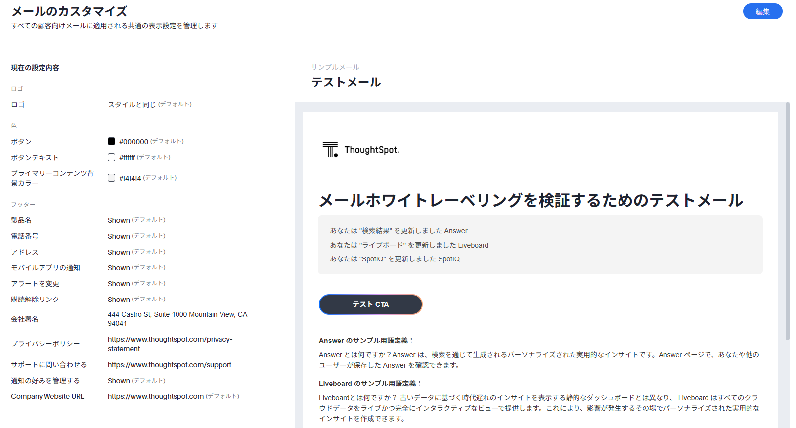 ThoughtSpotのシステムが配信するメールをカスタマイズできるようになりました。