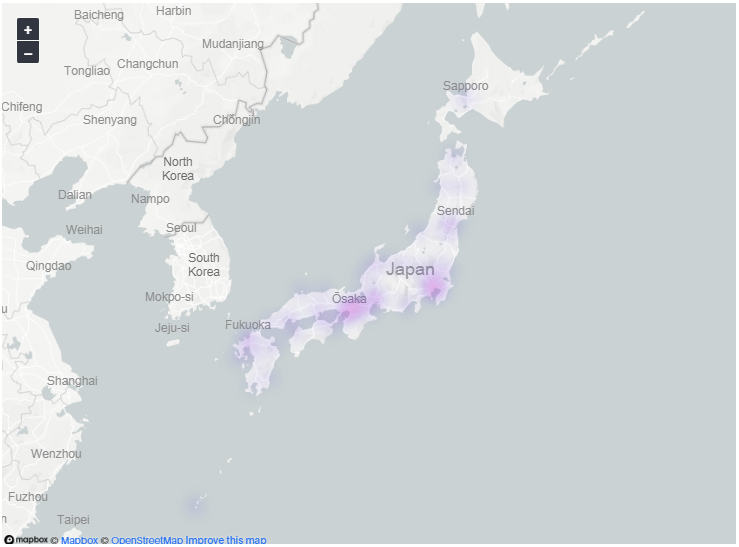 地域ヒートマップもあまり詳細オプションがなく、このような表示までとなります。